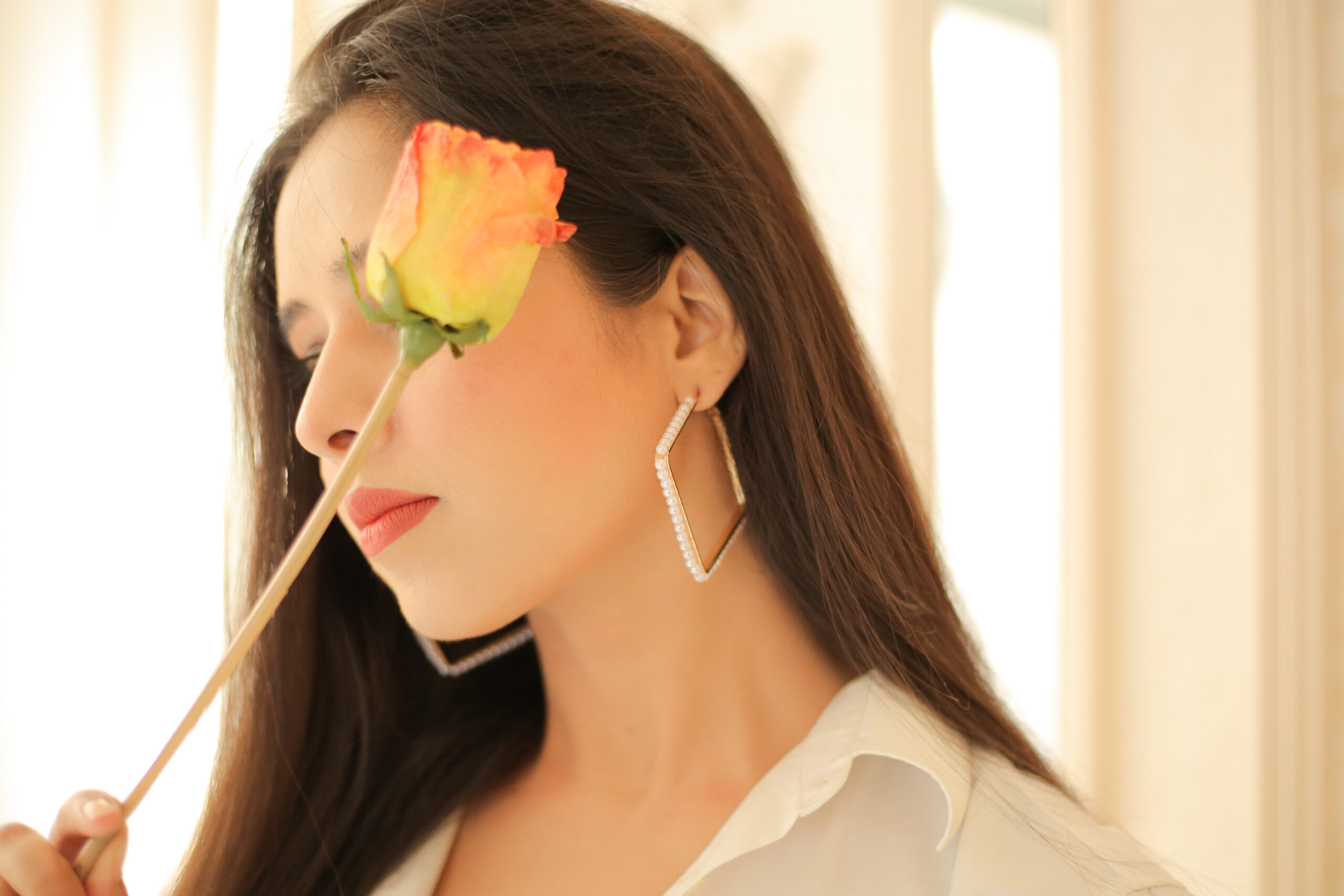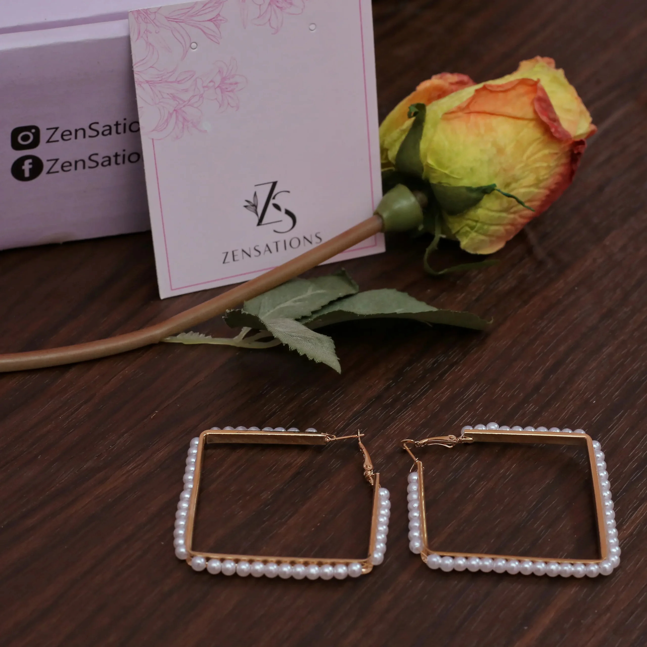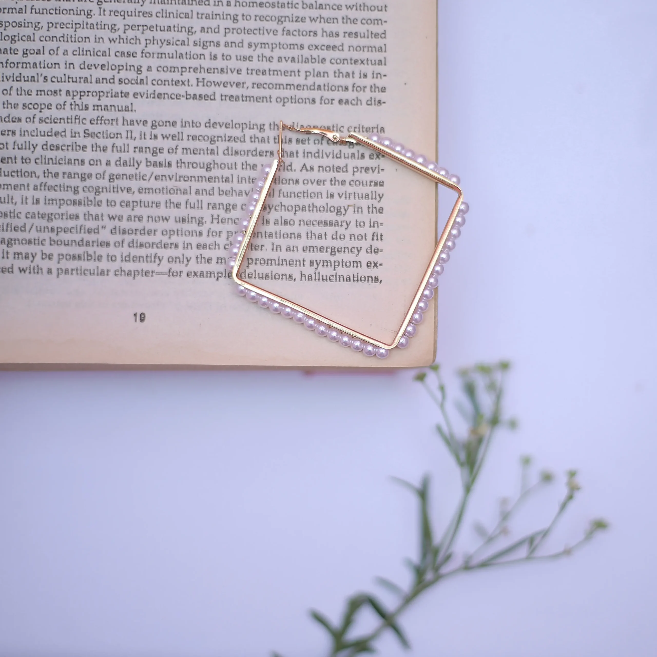Where modern design meets timeless pearl. Pearl Dusk is a large square hoop earring in rose gold with softly rounded corners, the entire frame lined with a continuous border of tiny, uniform seed pearls. Open at the centre, clean in finish, and elegant in every way, these earrings bridge the gap between classic and contemporary effortlessly.